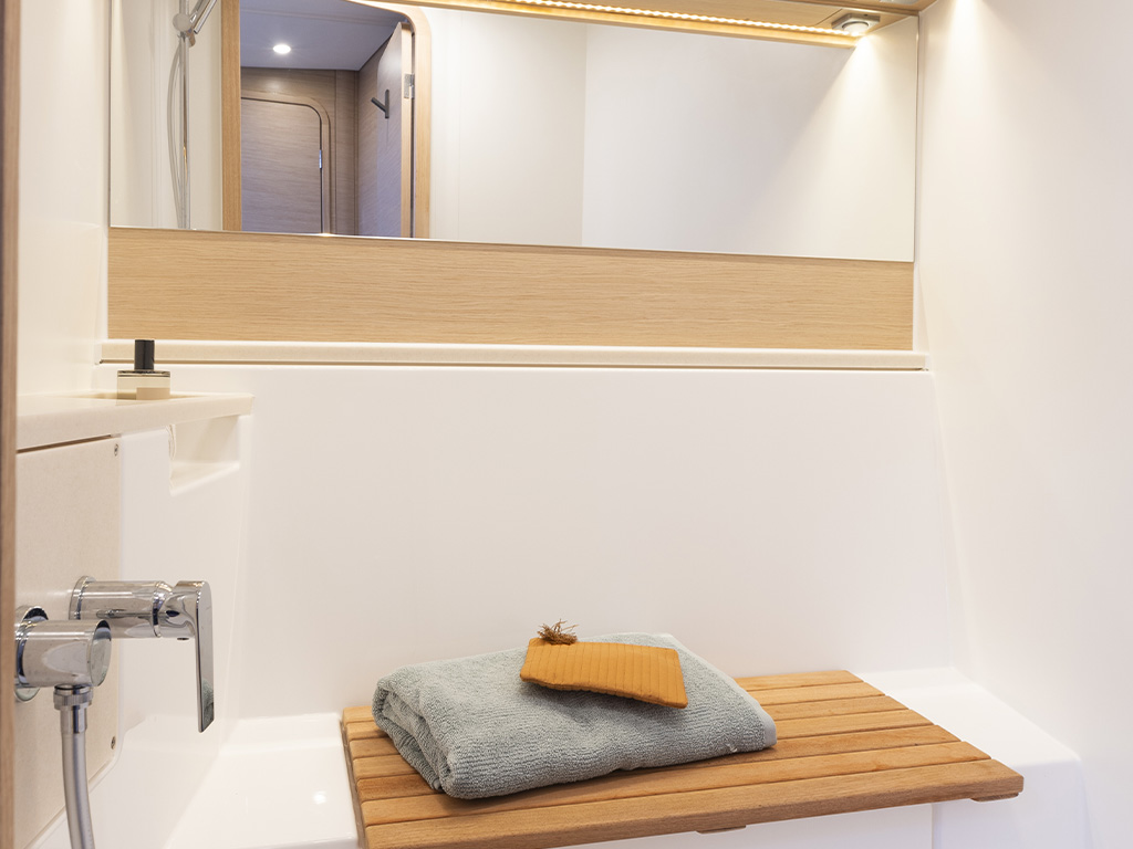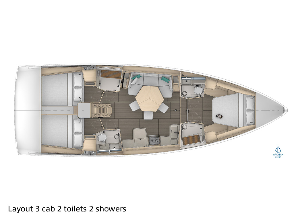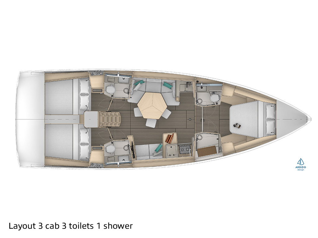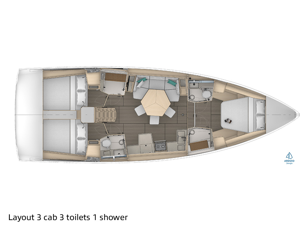 Zur Auswahl stehen vier Grundrisse – mit drei oder vier Kabinen sowie wahlweise einer seitlichen oder vorderen Pantry. Jede Variante ist auf maximalen Komfort und Effizienz im Bordalltag ausgelegt.Optimiertes Decklayout