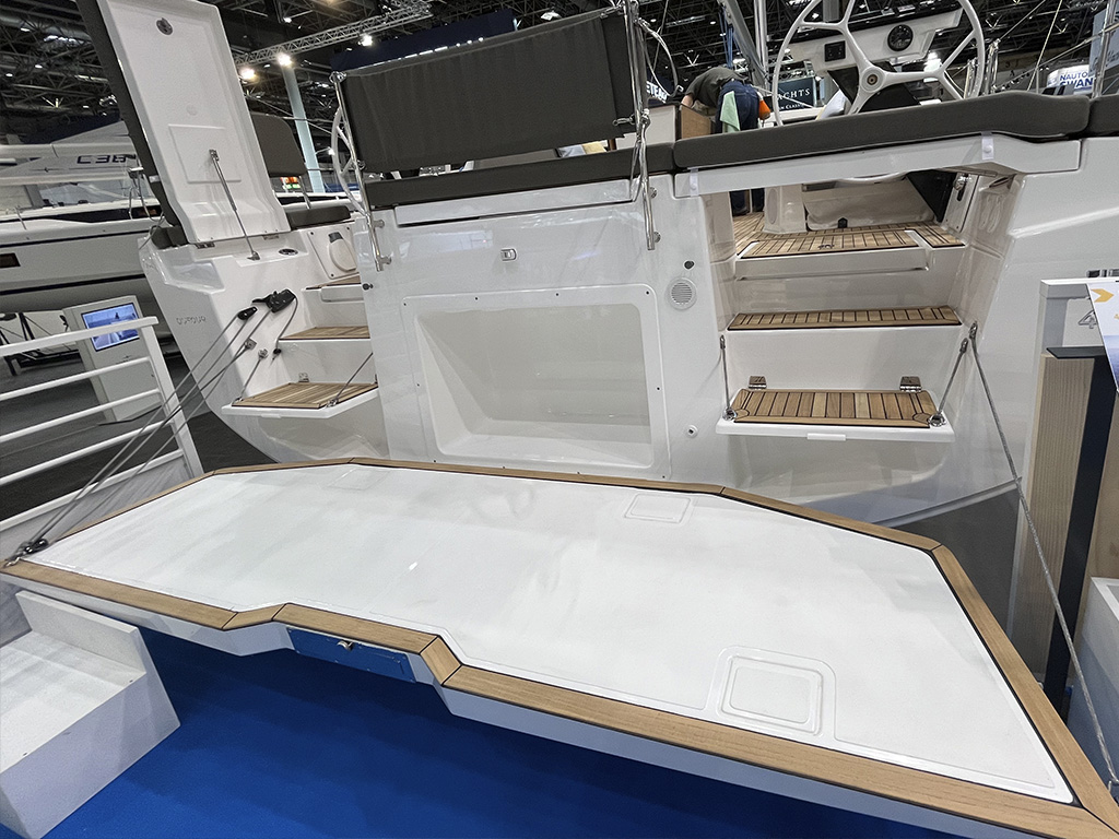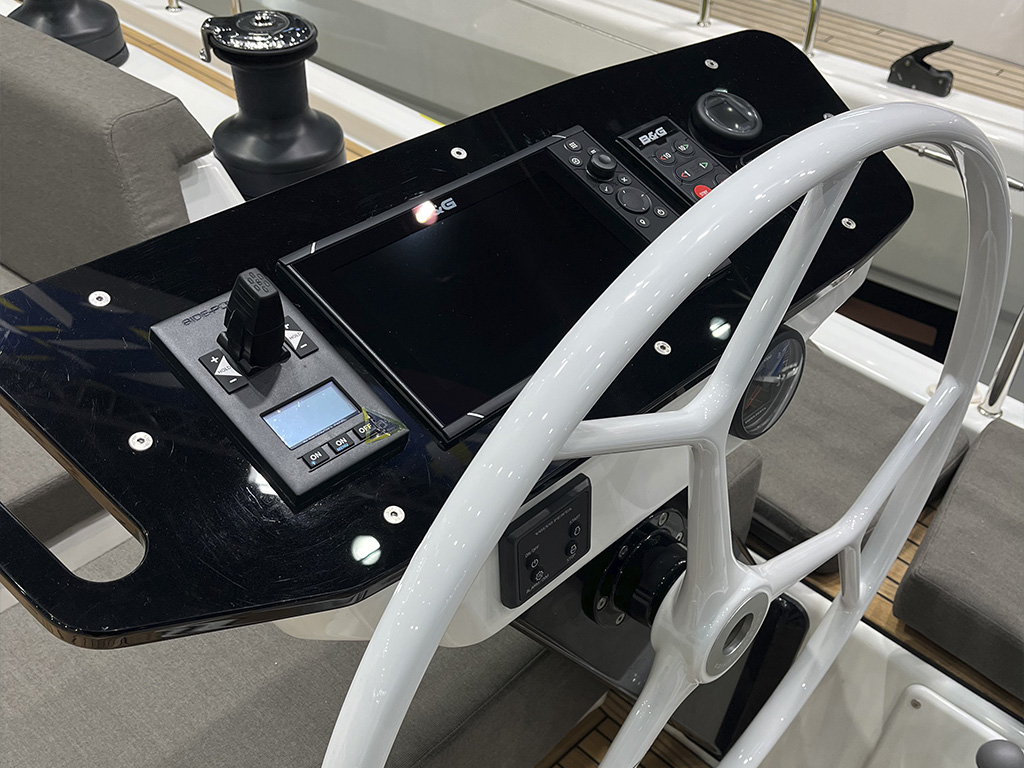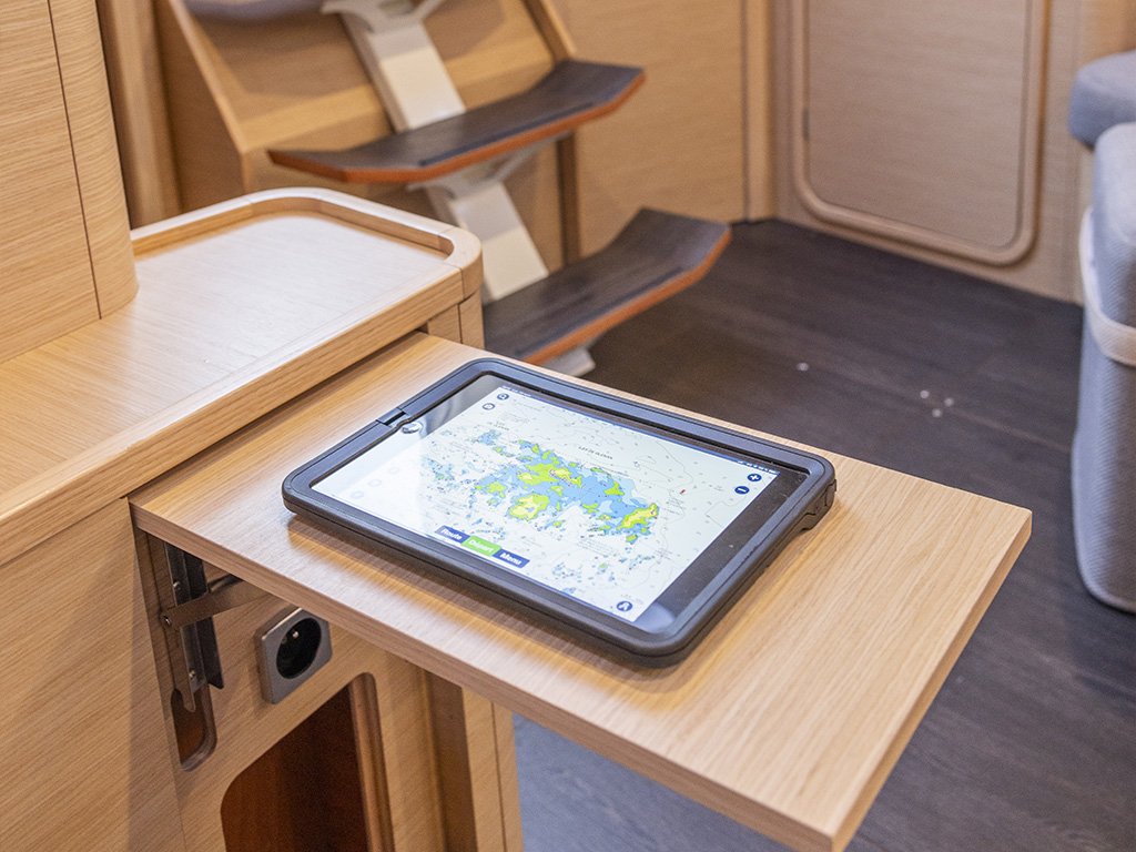 Das Cockpit wurde für leichteres Handling vergrößert, insbesondere im Bereich zwischen Steuerrad und Winschen. Im Hafen oder vor Anker bietet die erweiterte Badeplattform mit doppeltem Zugang freie Beweglichkeit, ergänzt durch den typischen Dufour-Plancha-Grill.Vielseitigkeit & Performance