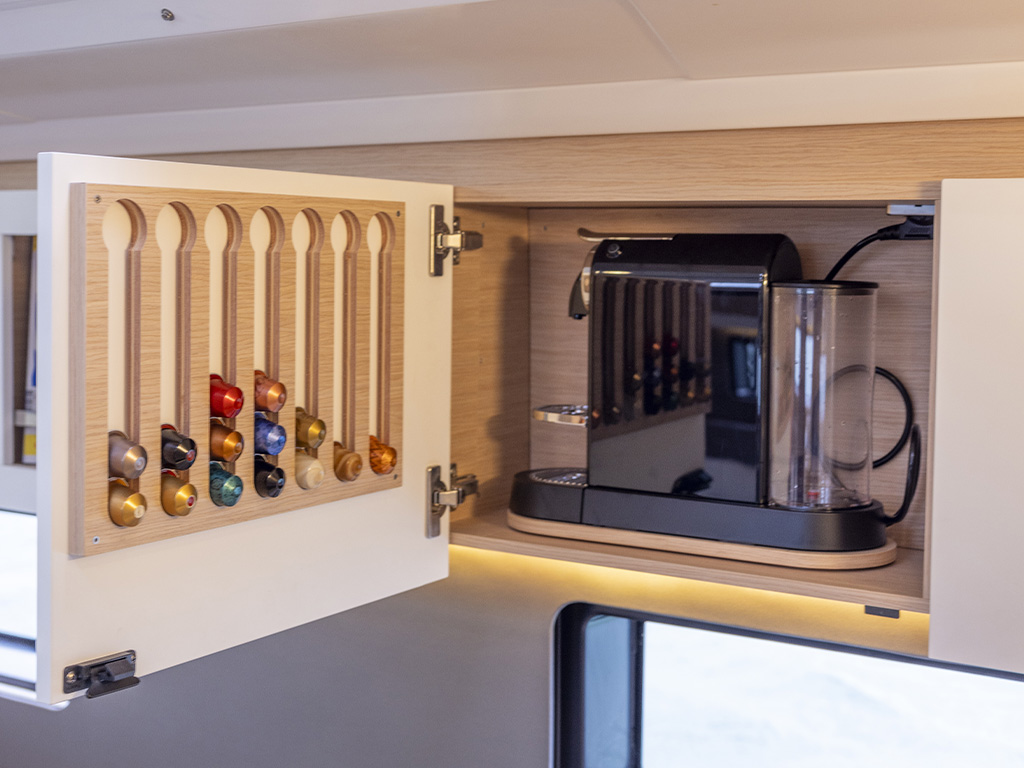 Großzügige Kabinen, eine voll ausgestattete Pantry und ein lichtdurchfluteter Hauptsalon bieten höchsten Wohnkomfort. Jedes Detail wurde auf Wohlbefinden und Funktionalität ausgelegt.Mehr als nur eine Yacht