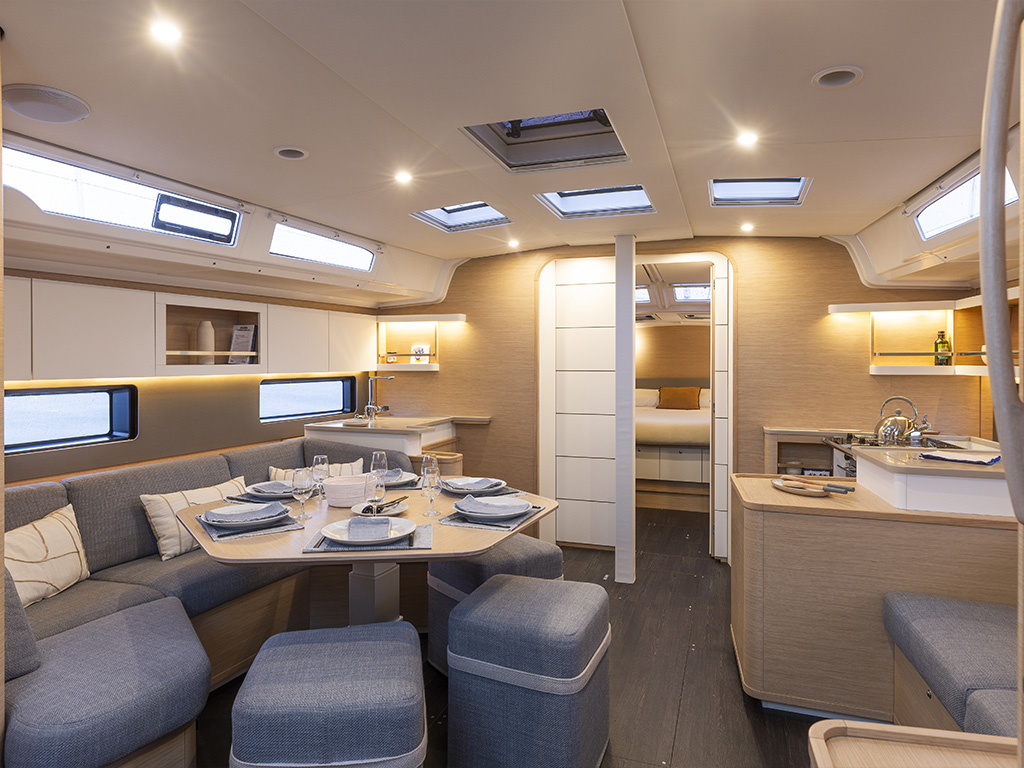 Ob Küstentörn, lange Passage oder Wochenendausflug – die Dufour 44 überzeugt mit Stabilität, einfacher Manövrierbarkeit und einer perfekten Balance aus Geschwindigkeit und Komfort. Ihre schlanken Linien verbessern sowohl die Ästhetik als auch die Hydrodynamik.Komfort unter Deck