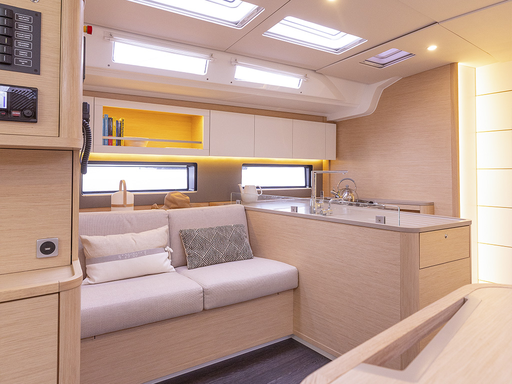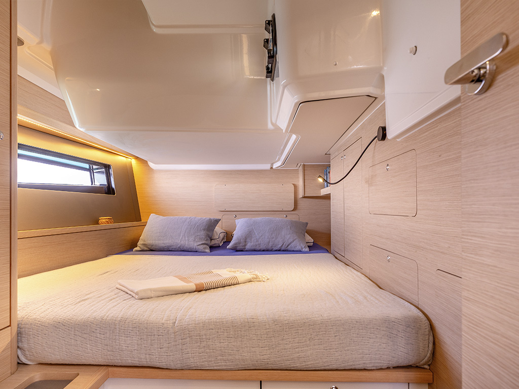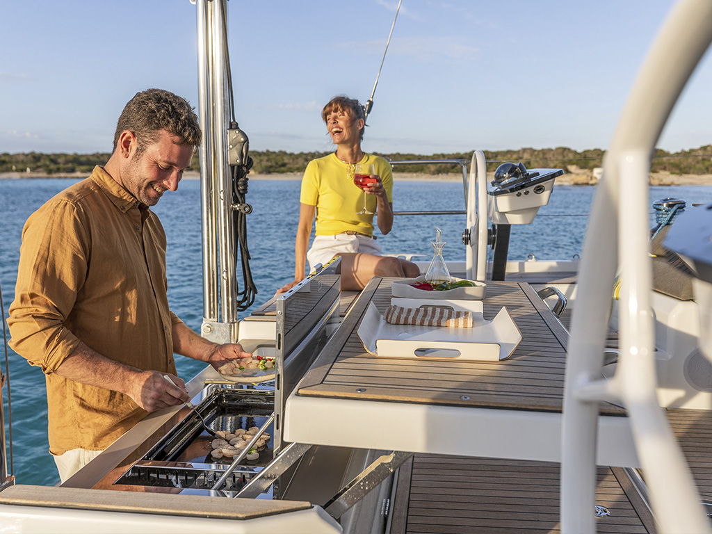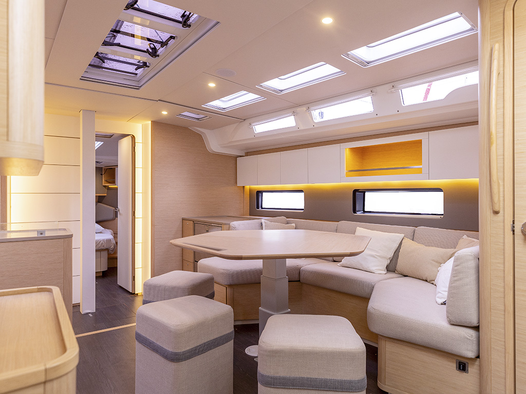 Große Fensterflächen und zusätzliche Luken sorgen für lichtdurchflutete Kabinen und einen einladenden Salon. Neueste Features wie ein TV-Liftsystem in der Eignerkabine unterstreichen den modernen Anspruch. Für Navigation und Bordelektronik setzt Dufour weiterhin auf die bewährte Partnerschaft mit B&G Electronics – Garant für Präzision und Zuverlässigkeit. Zwei separate Sonnendecks schaffen zusätzliche Erholungszonen. Im Vorschiffscockpit lassen sich die Tische absenken und verwandeln den Bereich in eine großzügige Liegefläche. Am Bug entsteht darüber hinaus ein zweites Sonnendeck auf dem Kajütaufbau – ein einzigartiger Platz, um Sonne und Meer inmitten der Segel zu genießen.Unvergleichlicher Segelkomfort