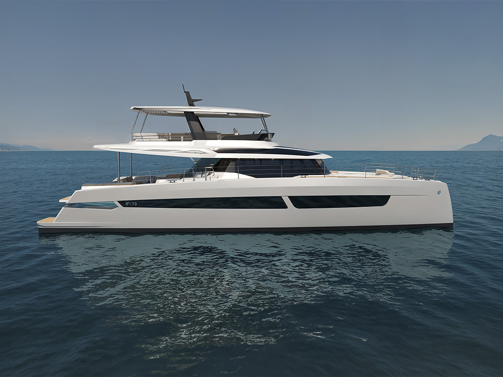 Powerful, silent, and efficient – the FPY 70 Power blends dynamic performance with sophistication, setting new standards among motor catamarans of its class.