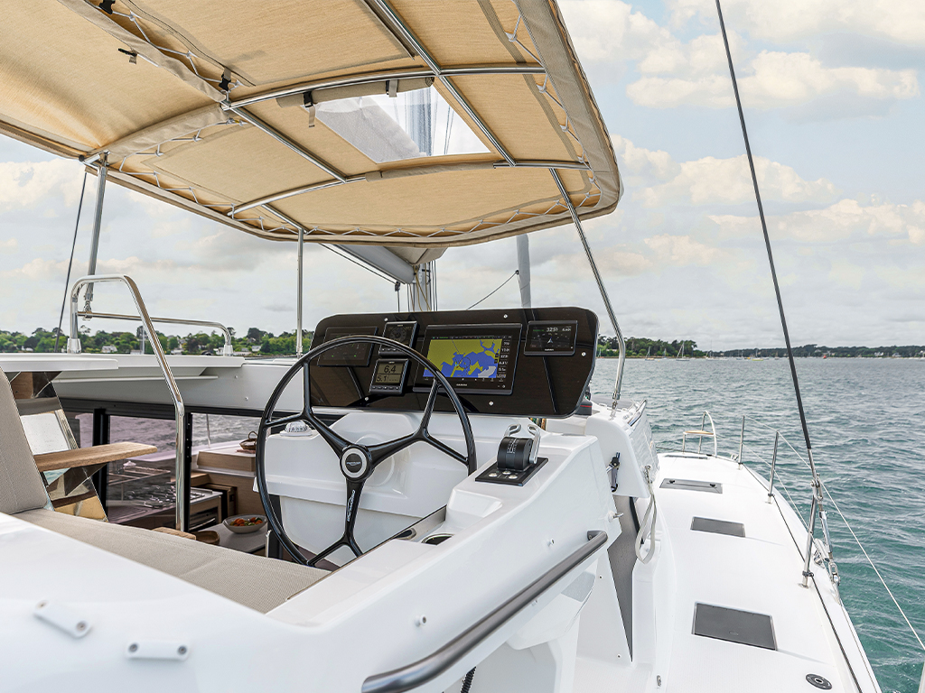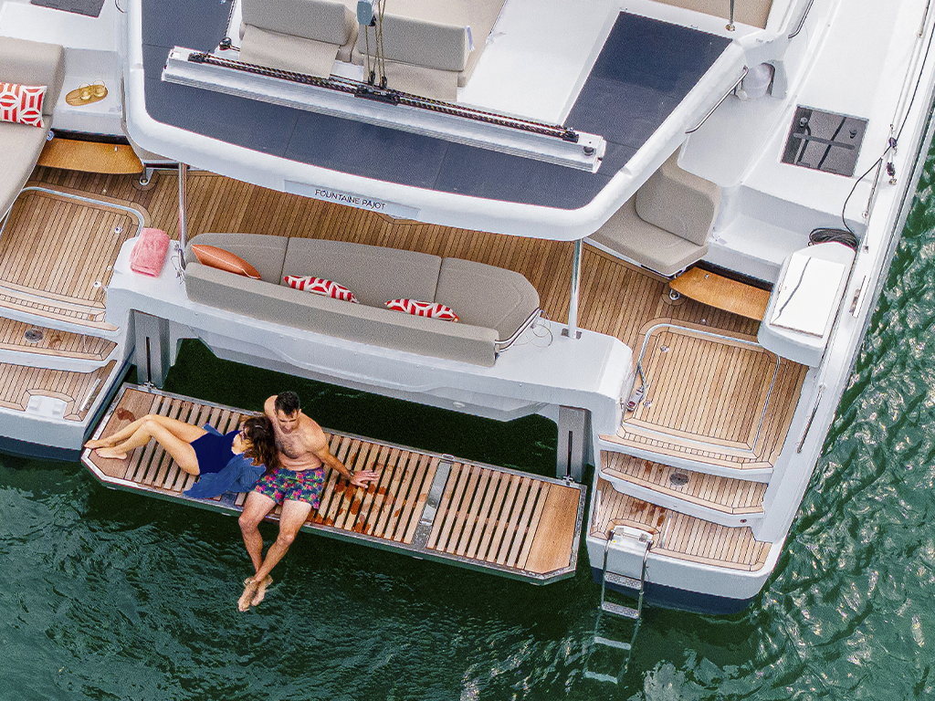 • Generous lounge areas: bimini, foredeck and integrated aft sunbed