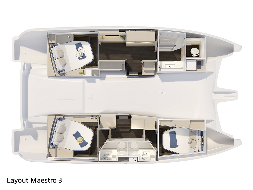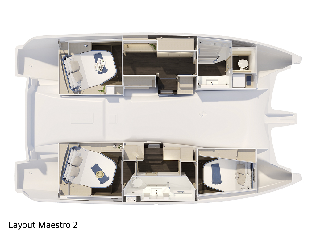• Maestro 2 version: 1 owner's suite + 1 private bathroom / 2 double cabins + 1 bathroom