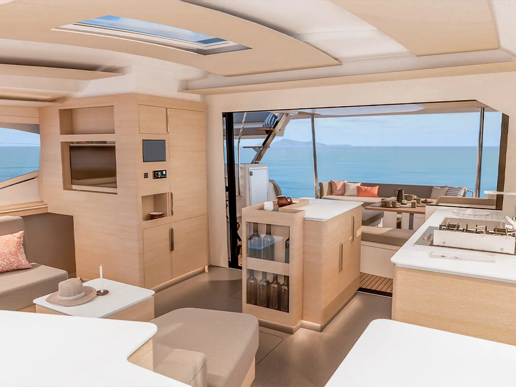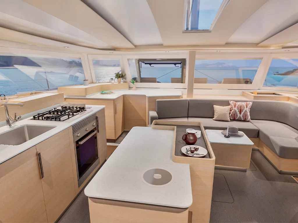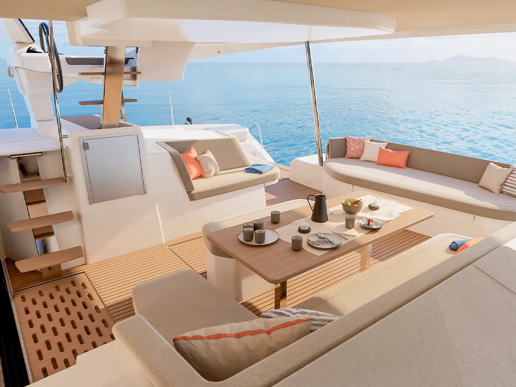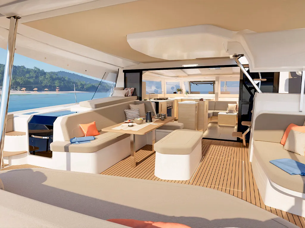 Spacious social areas – cockpit table for up to 8 people, rooftop lounge for sundowners under the stars