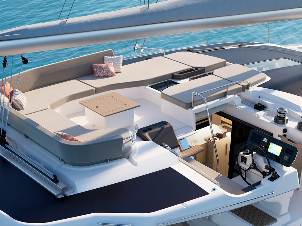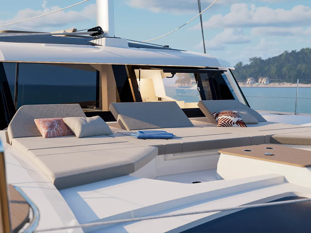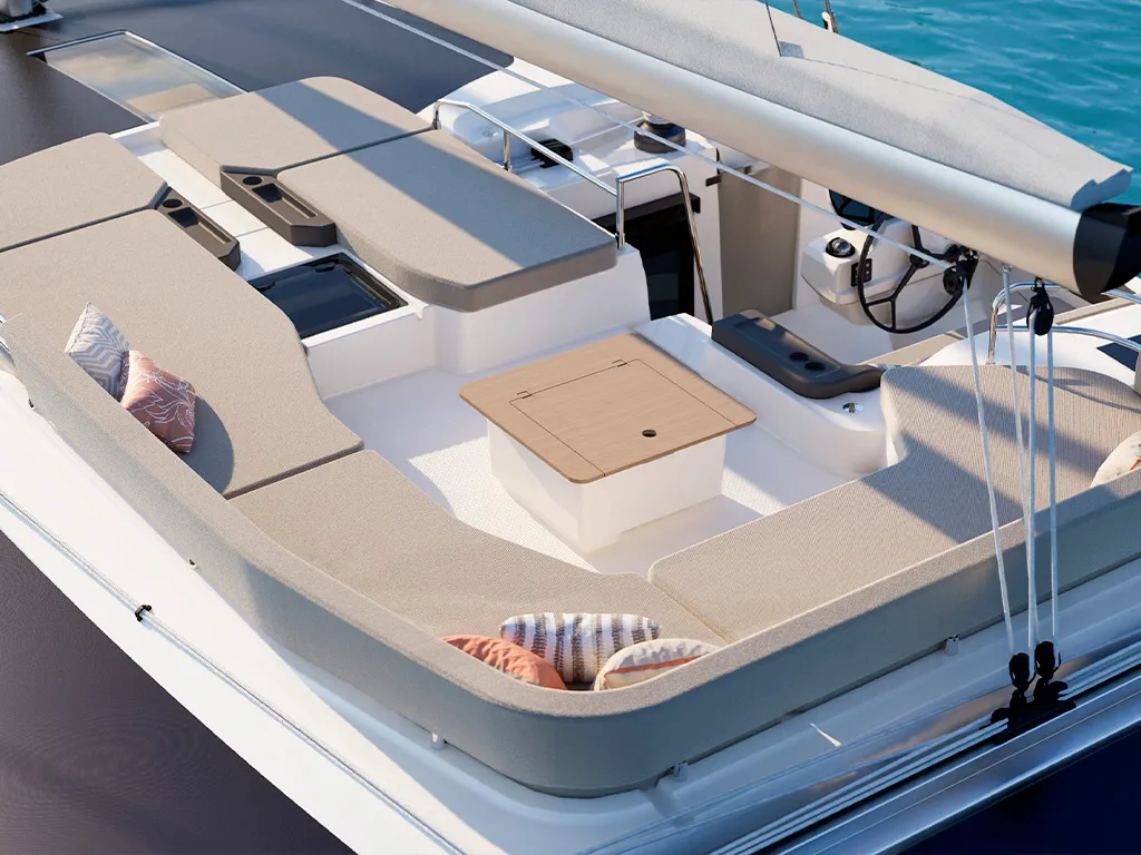 Private relaxation areas by the water – large sun loungers, comfortable cockpit benches and cozy lounge areas invite you to relax