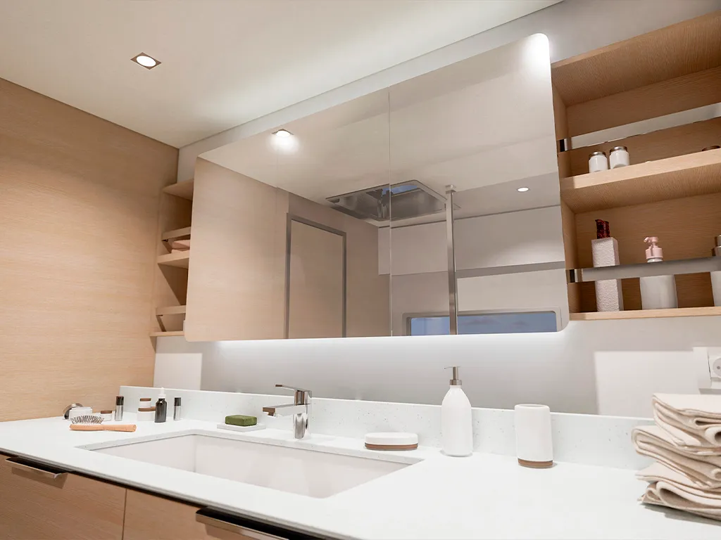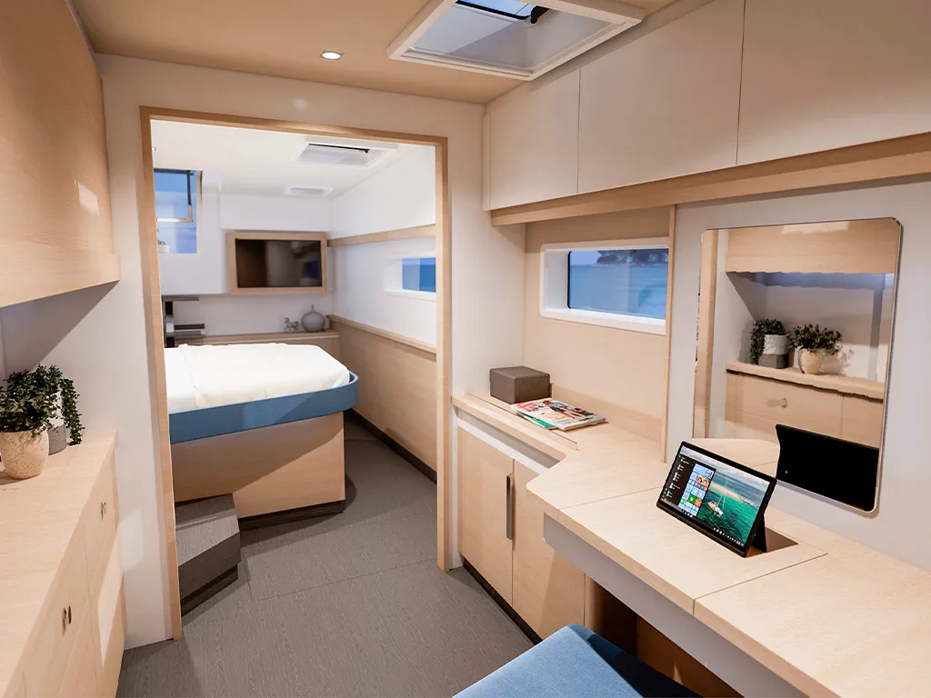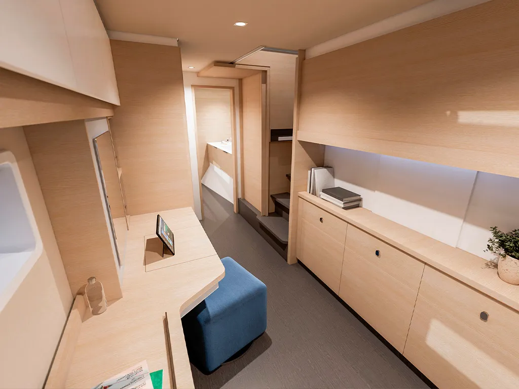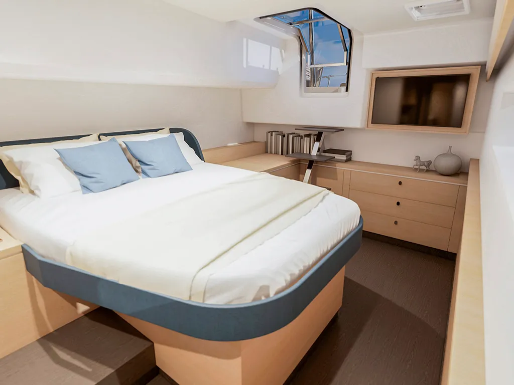 • Classic Maestro: 1 owner's suite + multifunctional room or dressing room / 2 double cabins + 2 bathrooms • Full Maestro: 1 owner's suite / 2 double cabins + 2 bathrooms • Quintet: 4 double cabins + 4 bathrooms + 1 bunk cabin with bathroomA catamaran for every crew size – 3 or 4 cabins and up to 10 berths