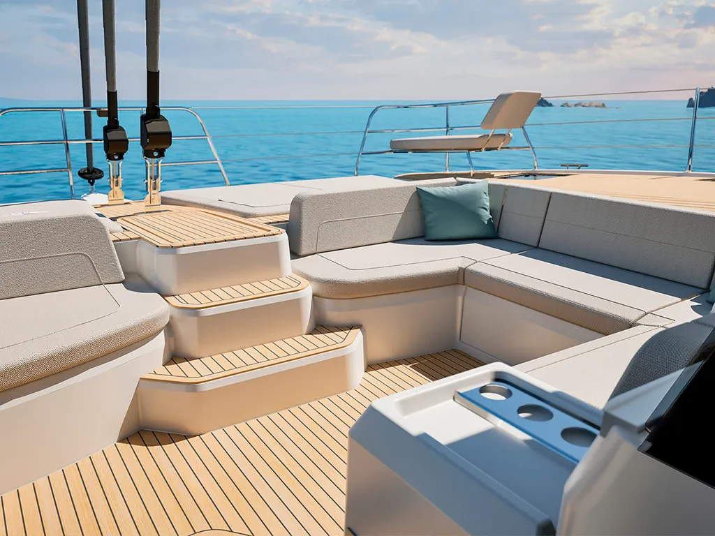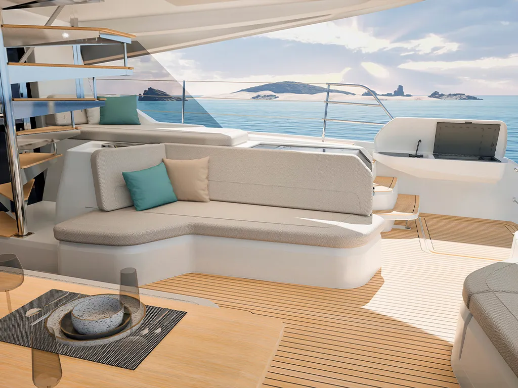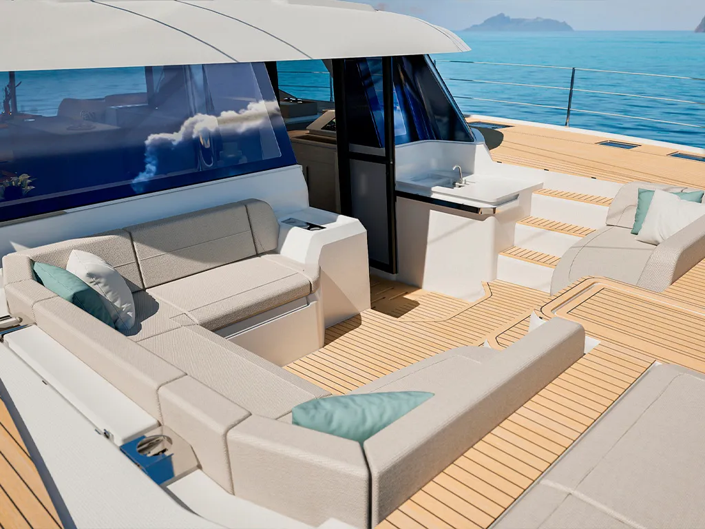 Innovative deck layout – direct access from the saloon to the forward cockpit for seamless transitions between inside and outside
