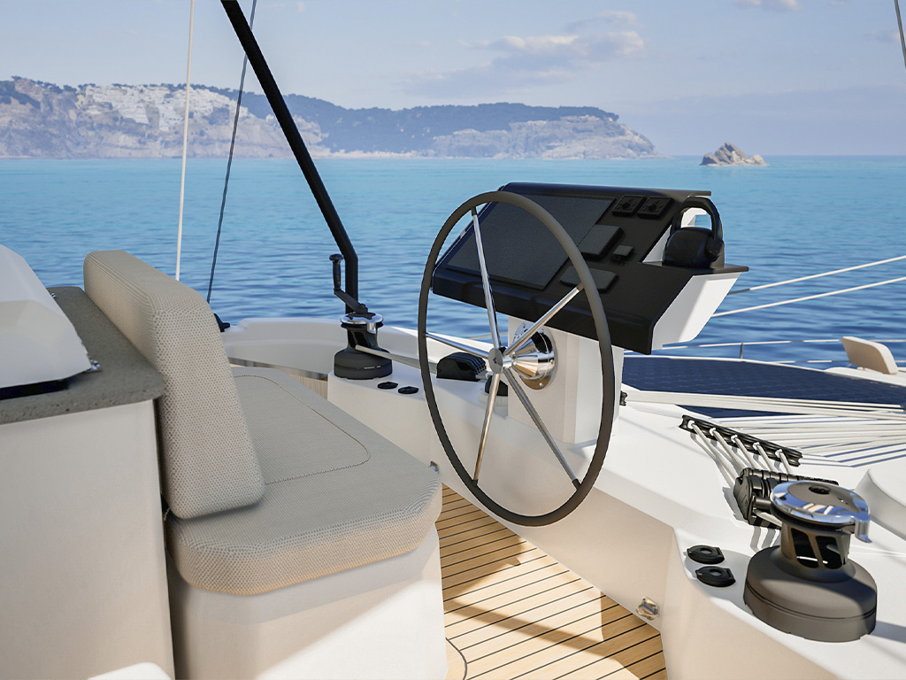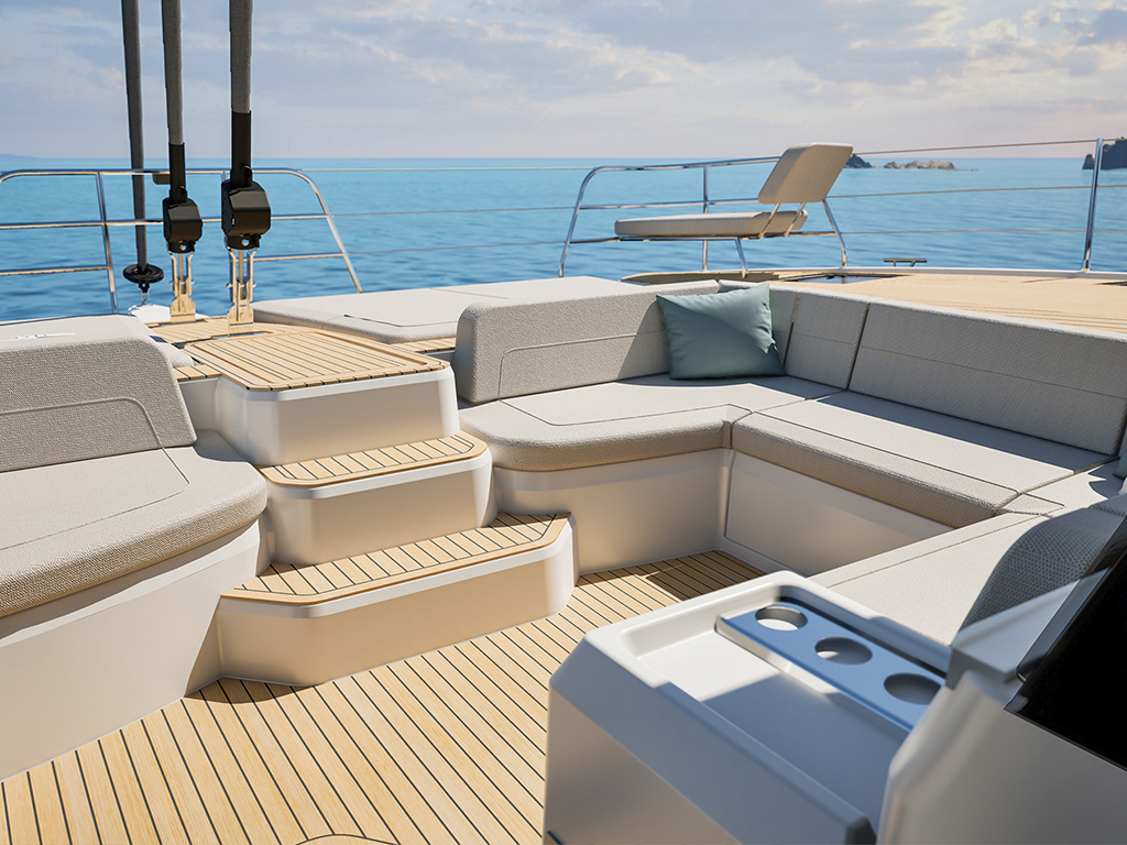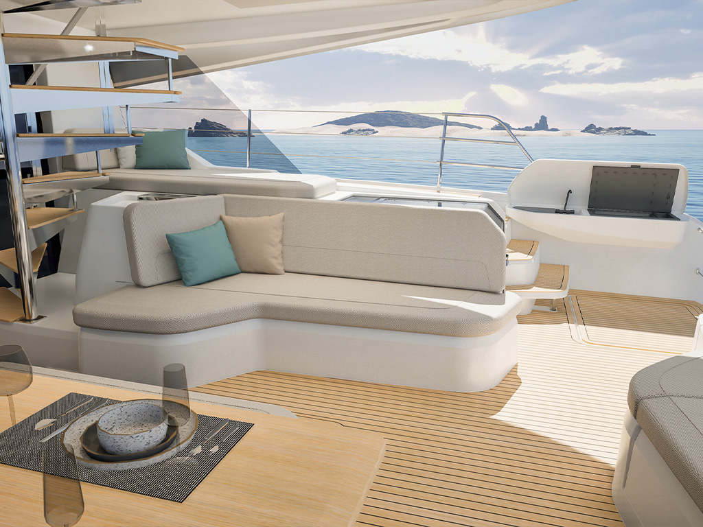 Innovative deck layout – direct access from the saloon to the forward cockpit for seamless transitions between inside and outside