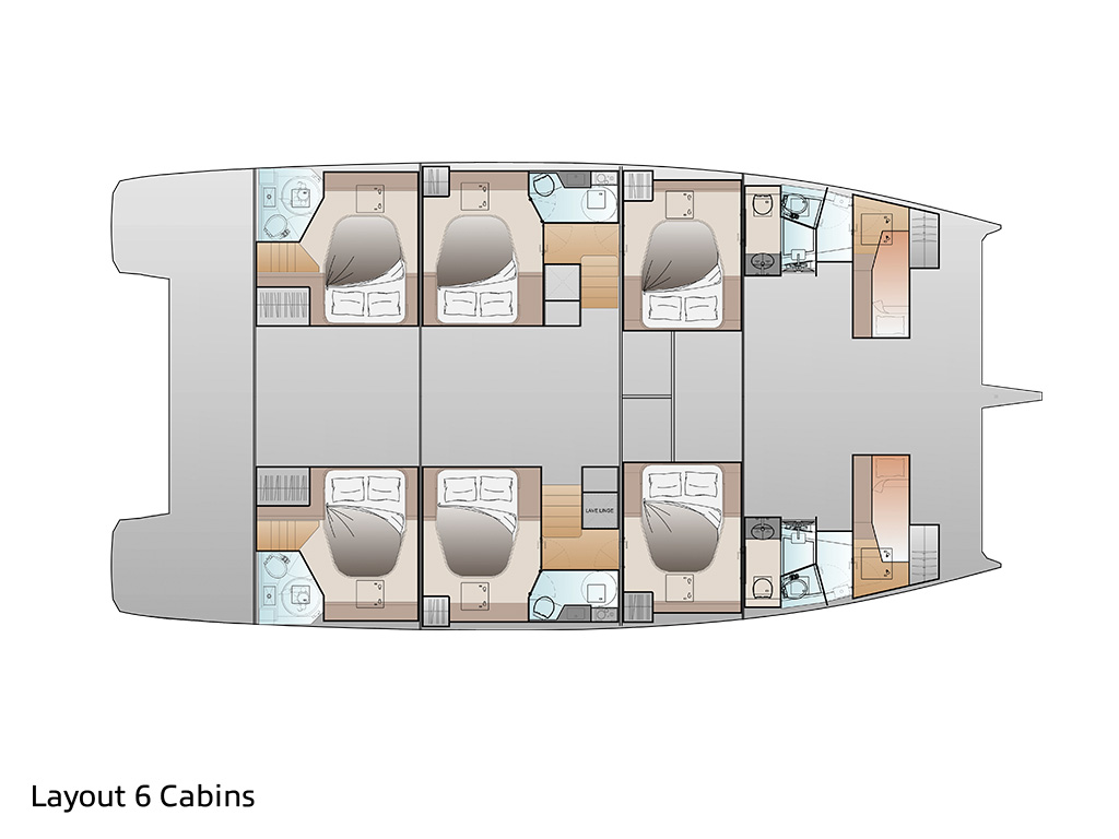 Flexible layouts – choice of 1 or 2 owner's suites or 6 equivalent double cabins