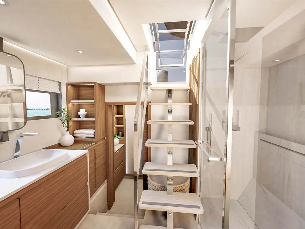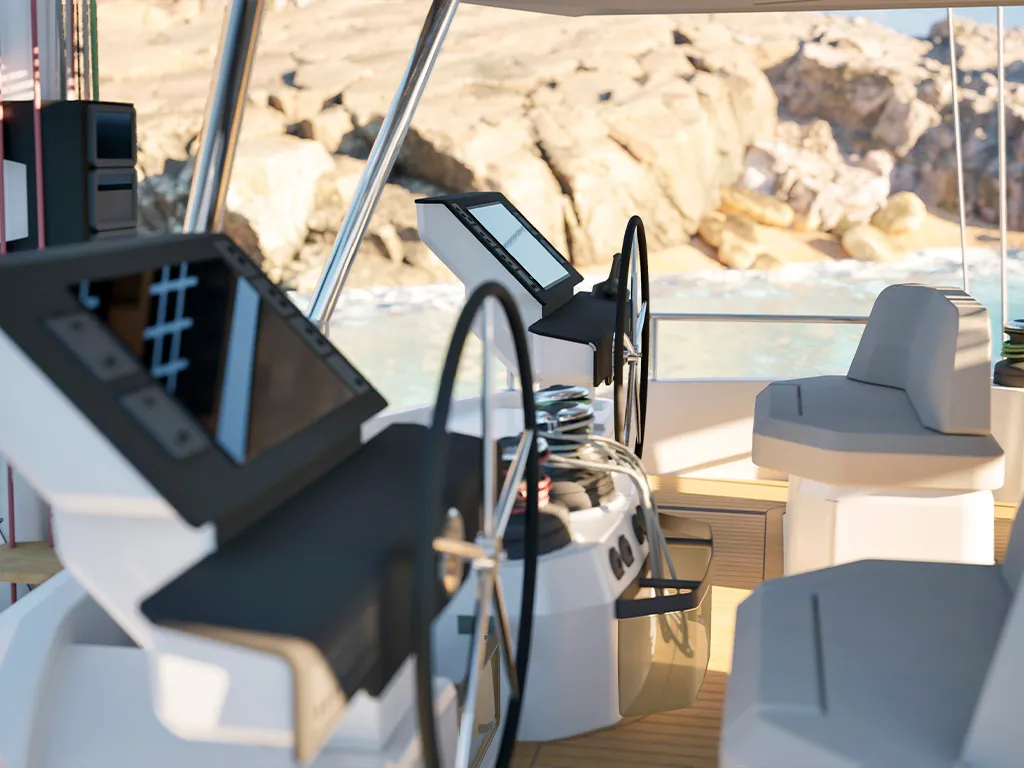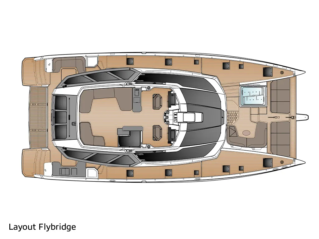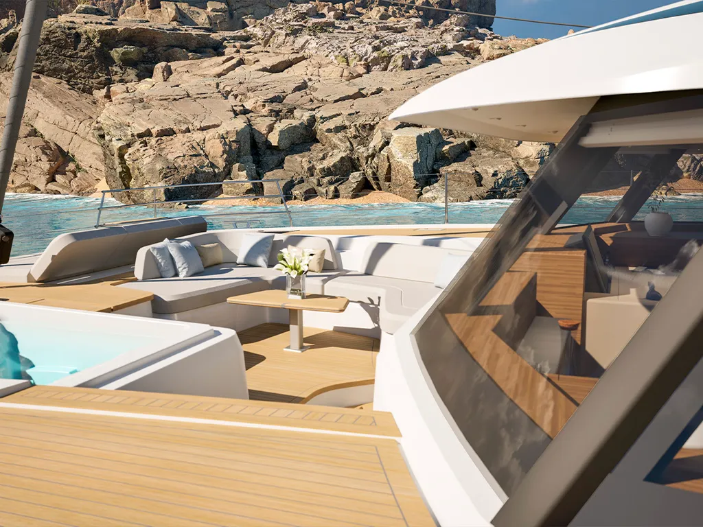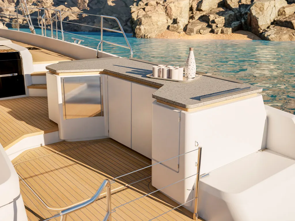 • 51 m² stern terrace with lounge• 31 m² flybridge with panoramic view