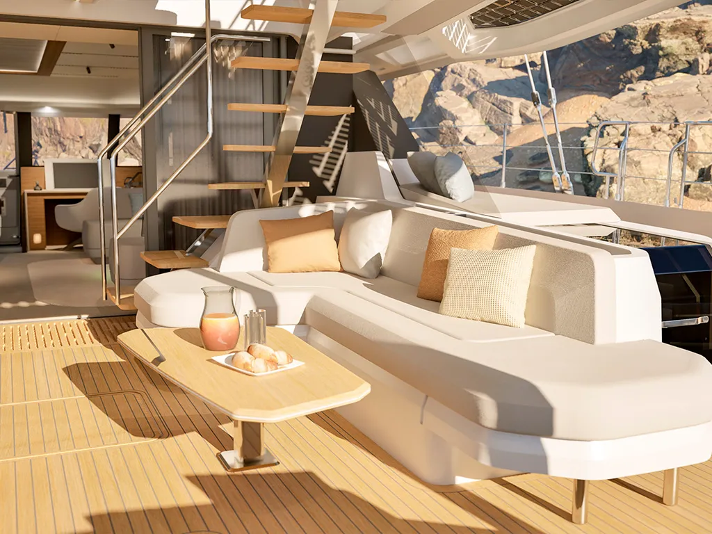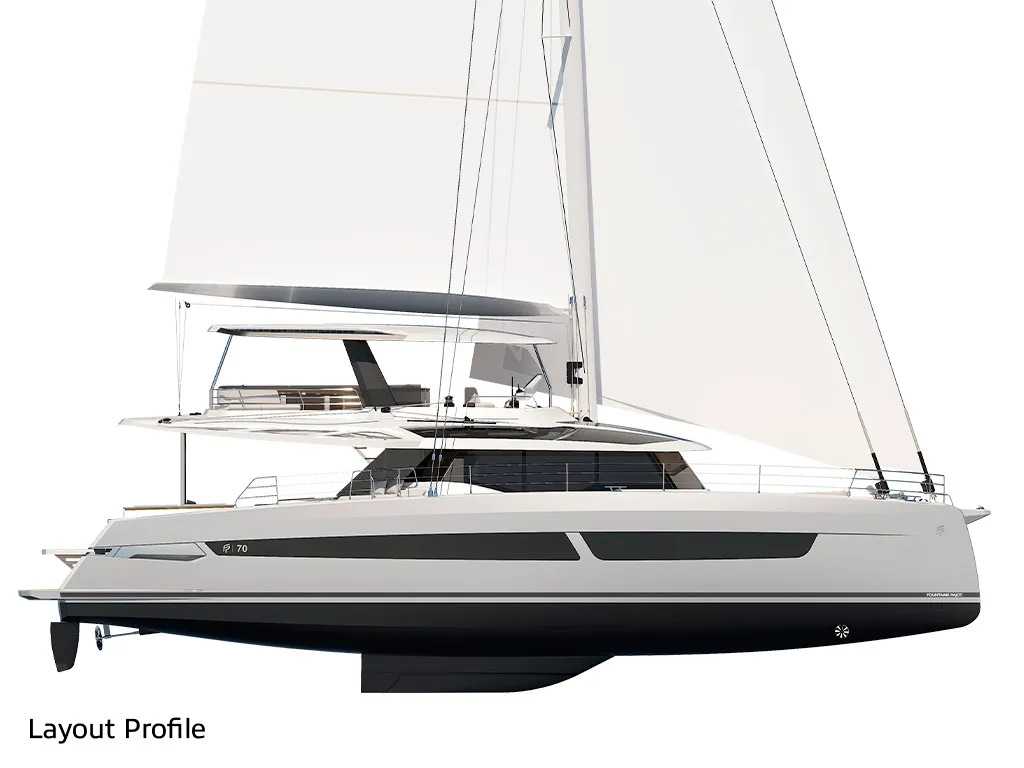 The Fountaine Pajot FPY 70S heralds a new era of luxury living at sea. This extraordinary catamaran yacht combines stylish elegance, outstanding sailing characteristics, and the quiet power of sustainable eco-navigation. With a length of 22 meters and 226 m² of living space, it offers room for up to 12 guests and 5 crew members—a floating residence designed for comfort, freedom, and exclusivity. Every line, every detail, and every material is an expression of craftsmanship perfection. The FPY 70S embodies a lifestyle in which luxury is discreet but omnipresent – individual, harmonious, and full of personality.Highlights