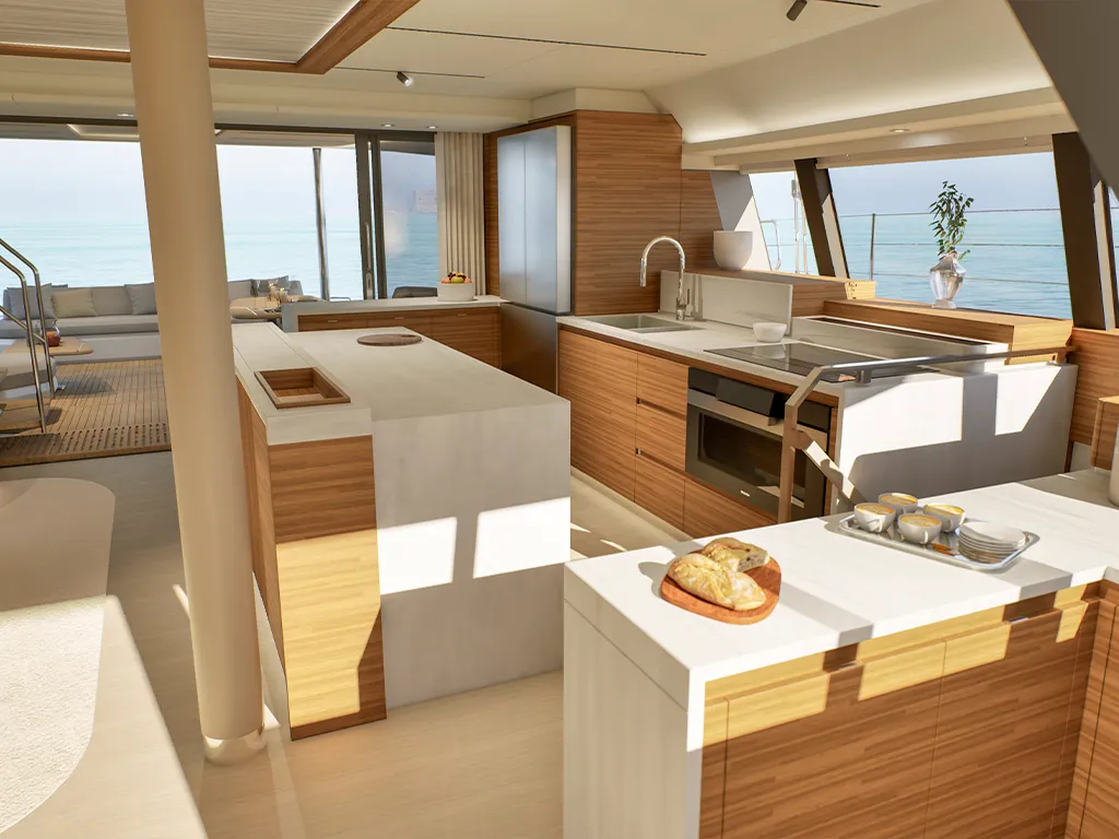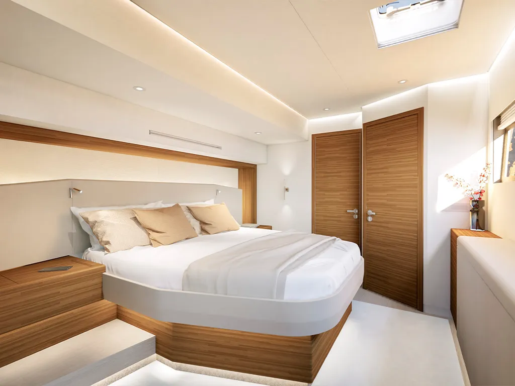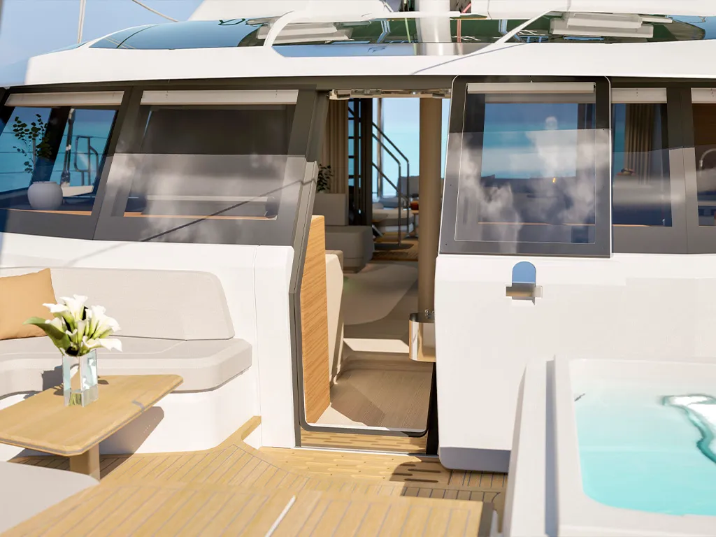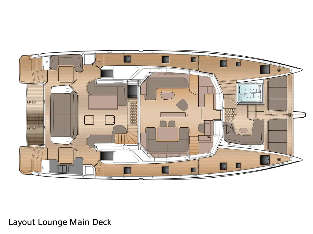 Maximum individuality – up to 8 flexible layout configurations: galley on main deck or in hull, 3–6 guest cabins, up to 5 crew cabins