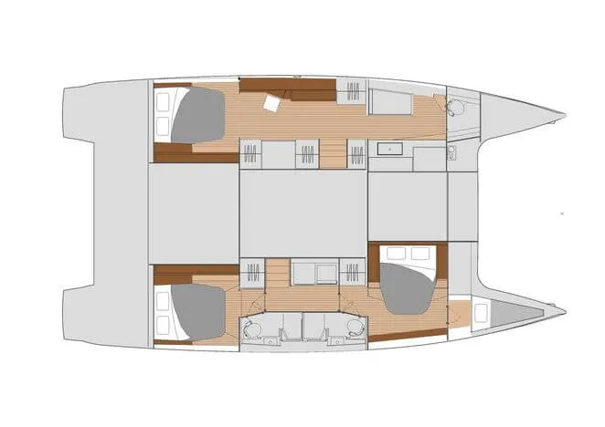 - "Maestro" version with incredible owner's apartment in the port hull and two guest cabins to starboard