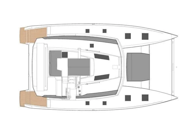 - Flybridge 9 m² with large sofa and two sun loungers