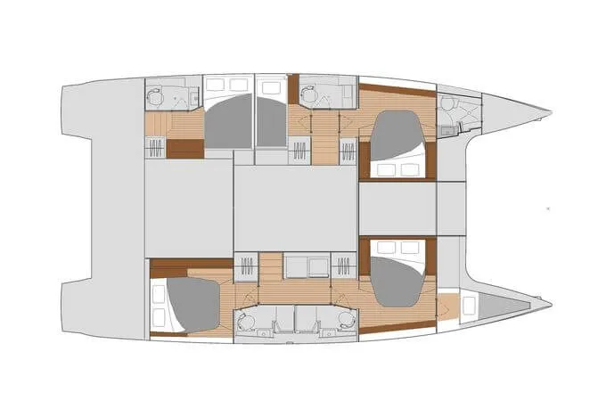 - Quintet" version with 5 cabins, each with en suite bathroom, for charter or large families