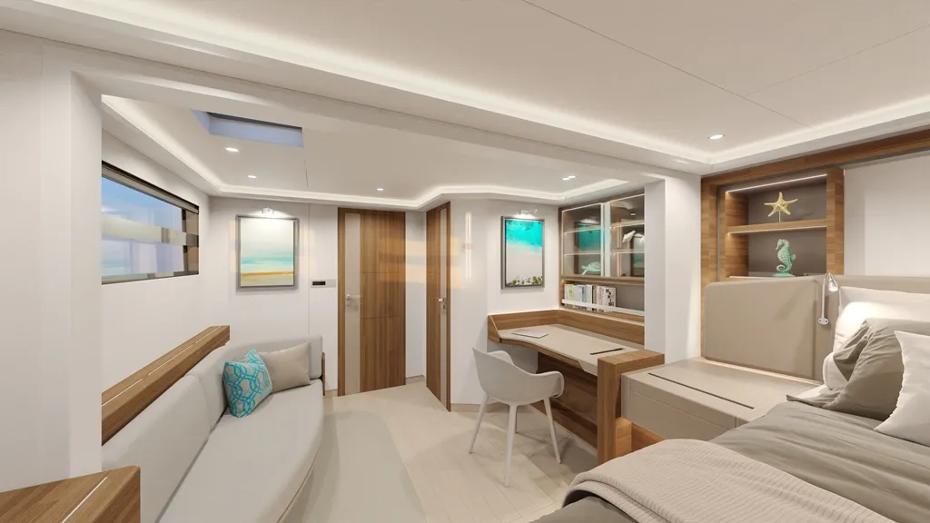 - Comfort and style in perfection: the interior of the Thíra 80 exudes luxury and can be adapted to your preferences and needs. From the spacious cabins to the modern amenities in the saloon, every space is carefully designed to offer the highest levels of comfort and style.