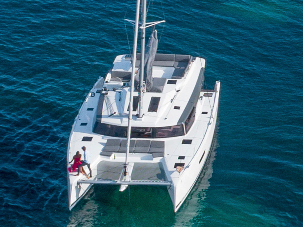 The Isla 40 is available for charter from/to Palma de Mallorca in the Quatuor 2 version with comfortable 4 double cabins and 2 bathrooms with separate shower as well as an extended forepeak cabin. This sailing catamaran thus offers space for up to 8+1 charter guests.