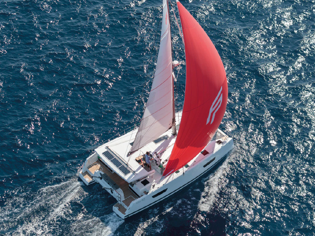 The new Fountaine Pajot Isla 40 is the exclusive entry-level model that impresses all along the line, both underway in the Balearic Islands and at anchor in the most beautiful bays and moorings.