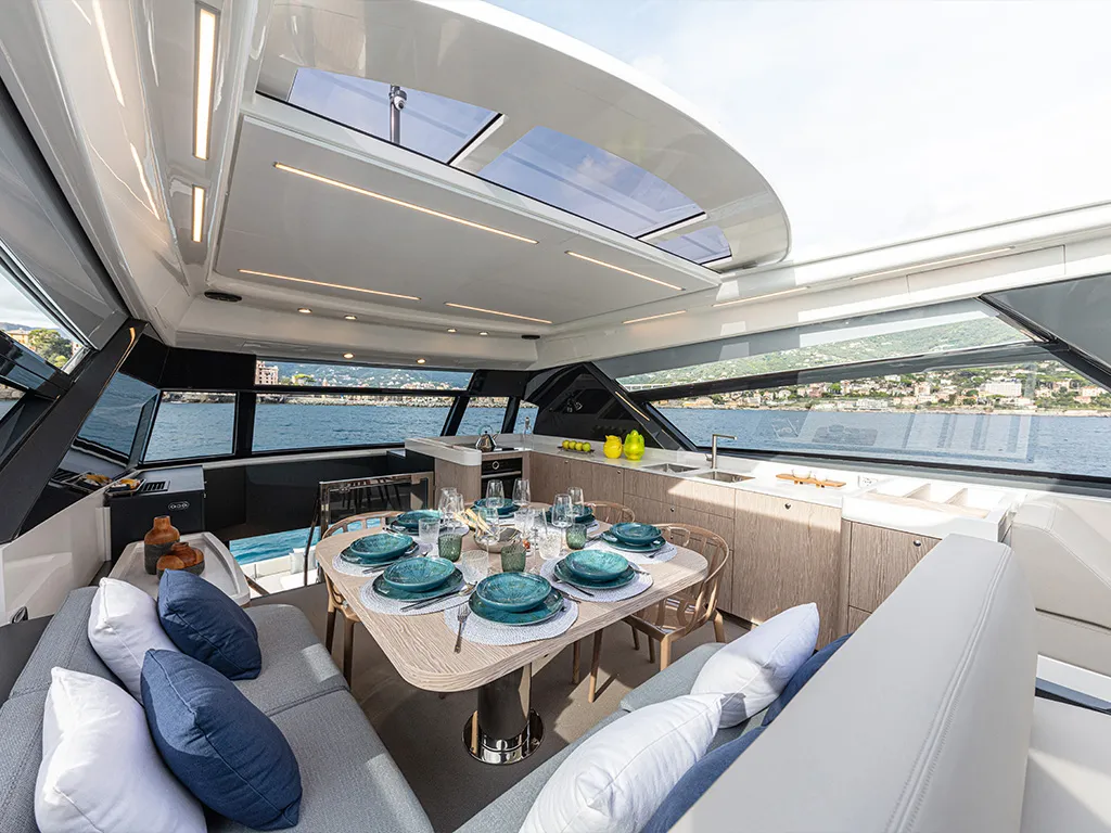 - Tecnología innovadora: Con tecnología de navegación y sistemas de entretenimiento de última generación, el Cetera 60 no sólo ofrece una impresionante autonomía, sino también una gran variedad de comodidades para el entretenimiento y la relajación a bordo.