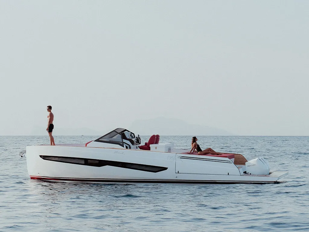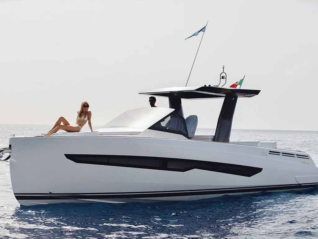 Bienvenido a bordo del flamante yate a motor Fiart Mare Seawalker 35: el sinónimo definitivo de lujo y rendimiento en alta mar. Este impresionante yate personifica el diseño y la artesanía italianos en estado puro y establece nuevos estándares de elegancia y funcionalidad. Descubra el mundo del Seawalker 35 con nosotros y déjese hechizar por una experiencia de conducción única sobre el agua.