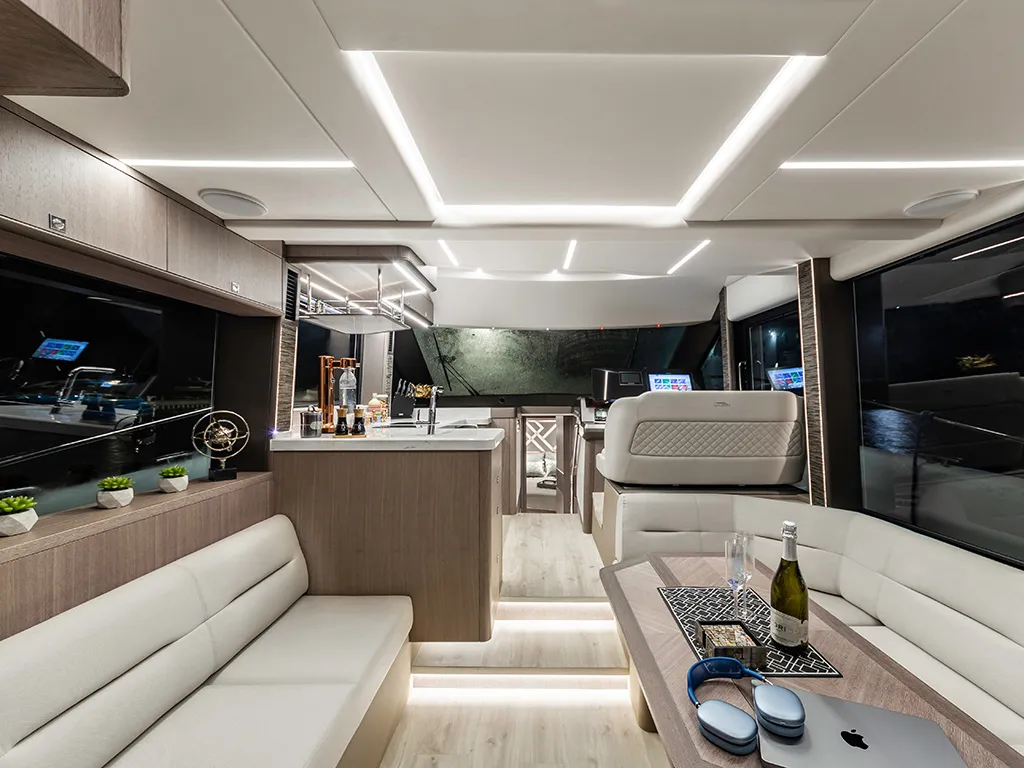 Großflächige Fenster: Helle und lebendige Atmosphäre im gesamten Inneren der Yacht.