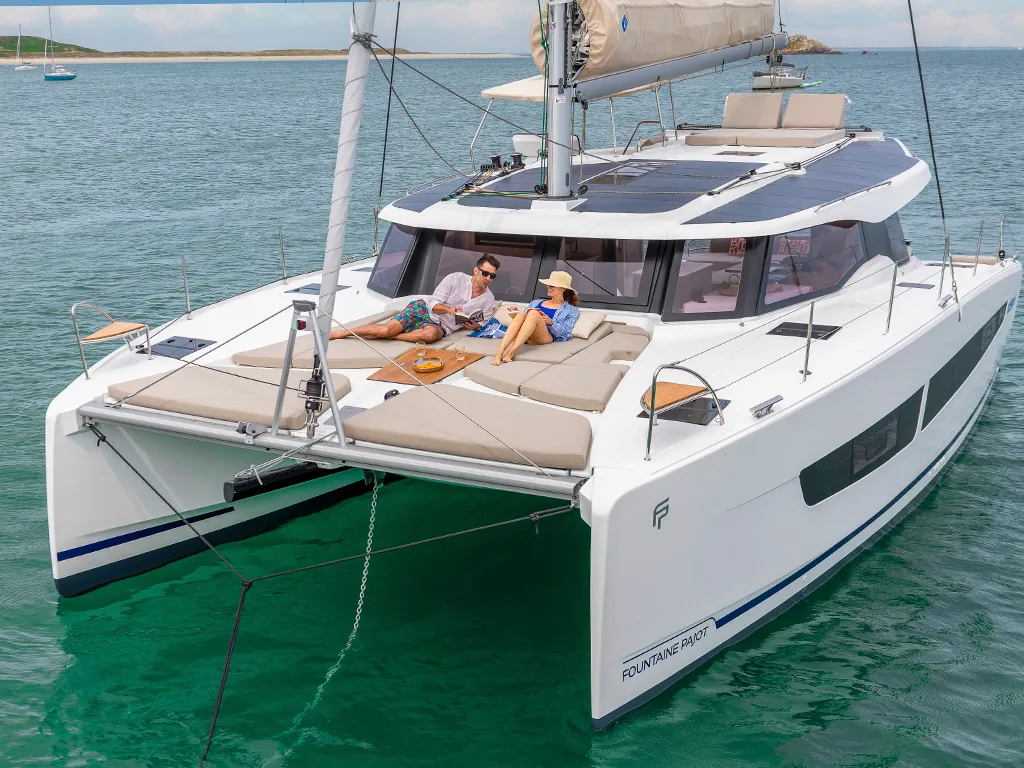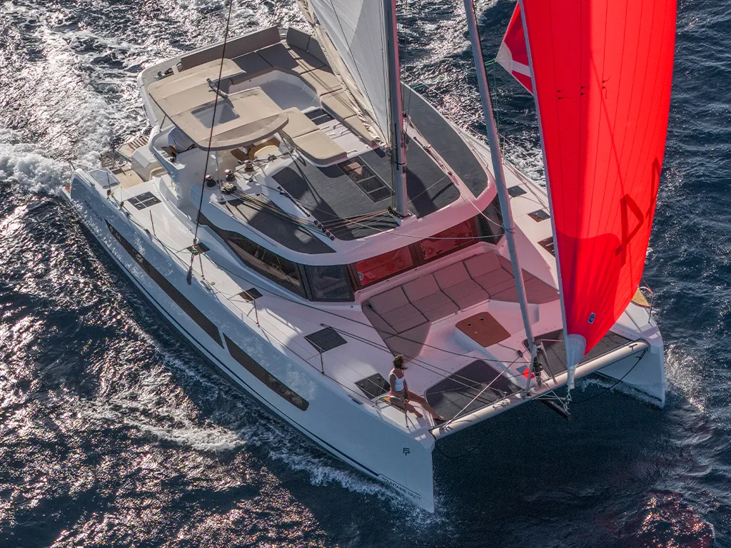 Die FP 41 steht für eine neue Generation nachhaltiger Katamarane. Mit 3 Kabinen, 6 Kojen und 3 Bädern verbindet sie Eleganz, Performance und Autonomie.